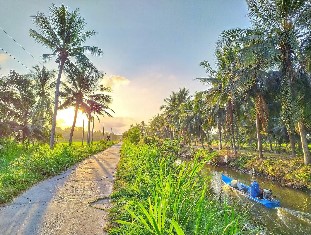 - Đi xuồng chèo len lỏi rạch nhỏ hai bên là hàng dừa nước xanh mát