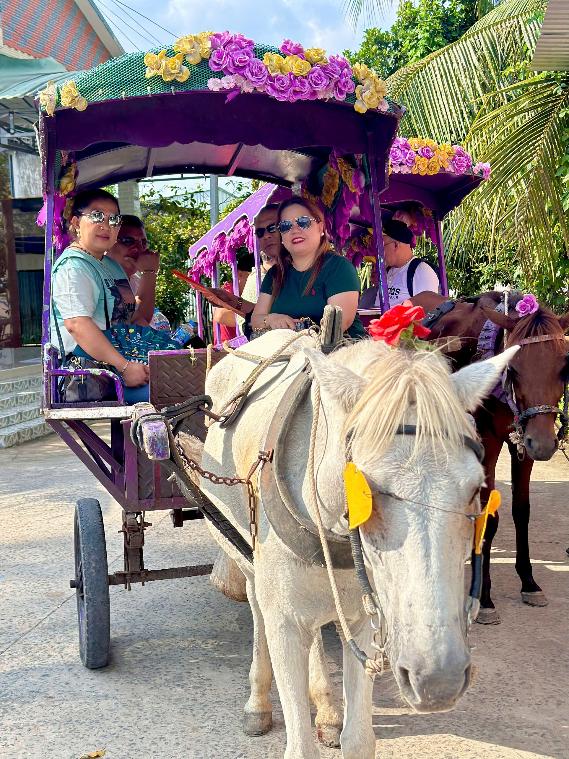 - Trải nghiệm xe ngựa trên đường làng xã Quới Sơn, ngắm vườn trái cây, cảnh sinh hoạt nông thôn